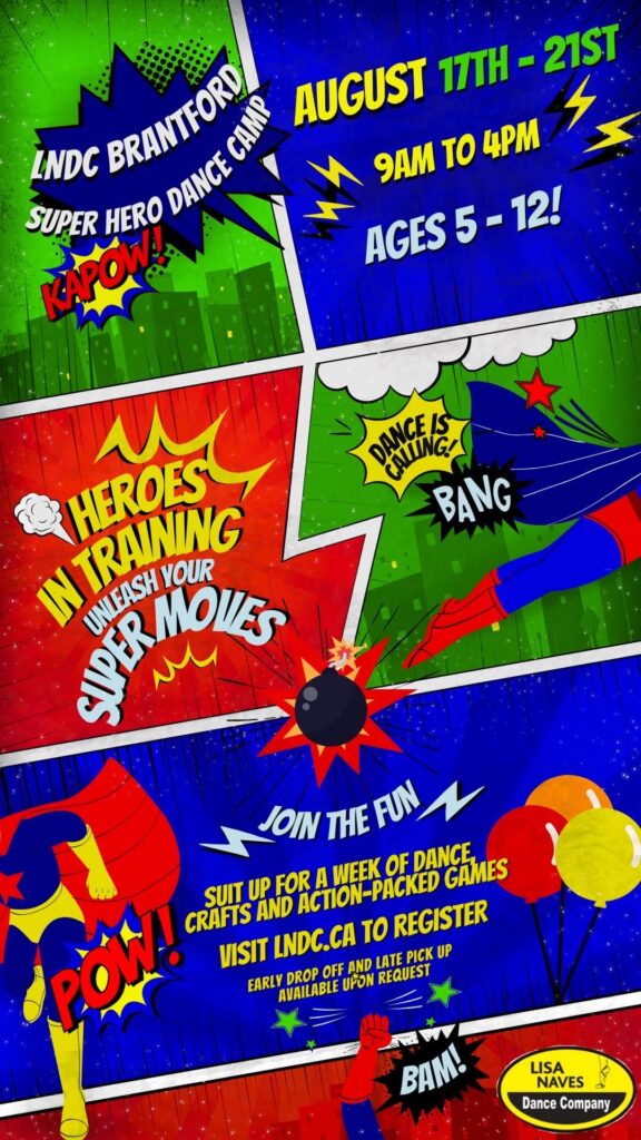Calling all Brantford Superheroes ….it’s time to unleash your SUPER MOVES at the LNDC SUPER HERO DANCE CAMP!
